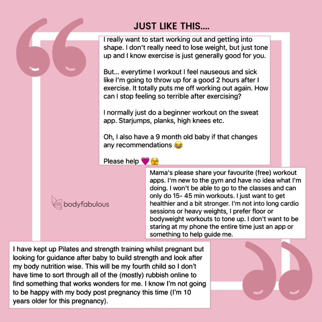 Unlike many other programs, this is not a generic exercise program that has been rebranded to only treat women like small men or could potentially be causing more harm than good with what they suggest – without any pelvic health certifications. The fitness industry is unregulated, so I have seen far too many clients injure themselves or become ridiculously depleted from workouts that are not appropriate for their female biomechanics, did not consider their female hormones or were simply created by someone who also had a baby (has zero qualifications) and decided to tell everyone to “just do what I did’